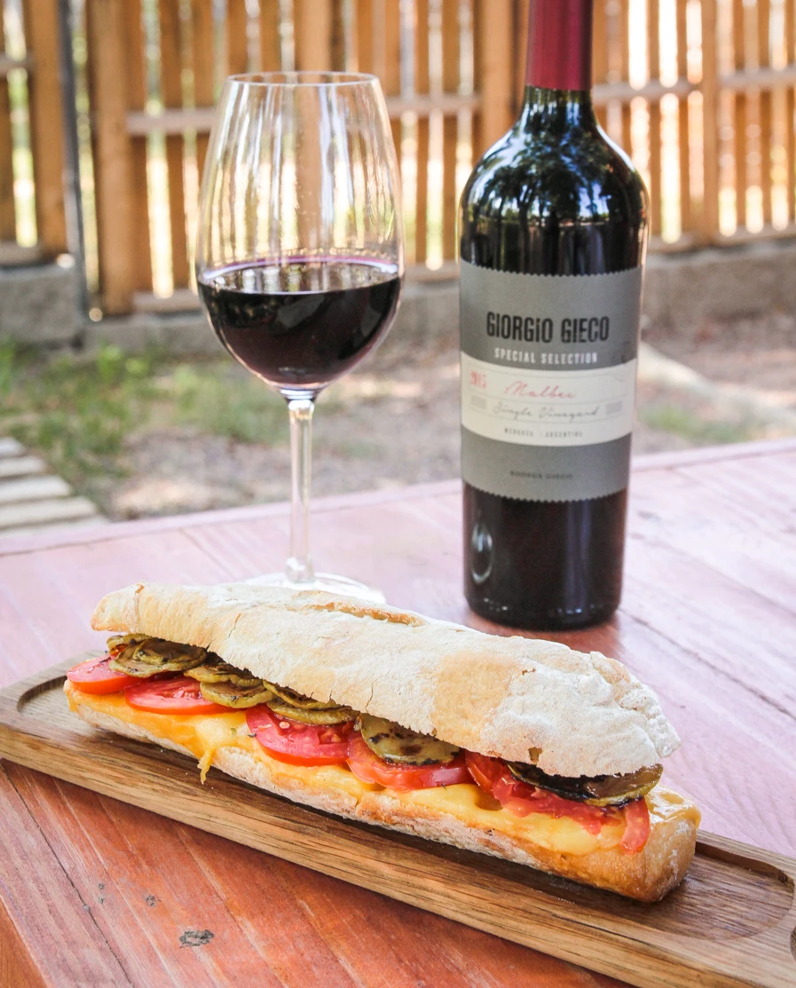 Parador de Bodega Gieco, patio vinero ubicado entre viñedos con una oferta gastronómica simple de sandwiches caseros y productos artesanales de la región.